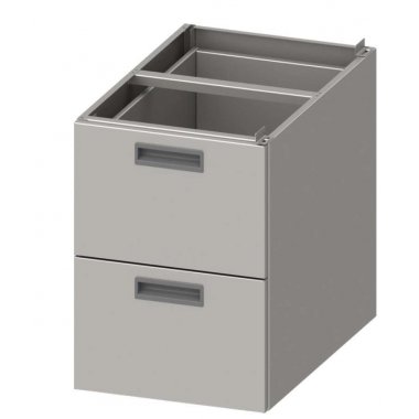 Características Técnicas • Módulo de cajones fabricado en acero AISI 201. • Guías con rodamientos lineales de bola para abrir y cerrar el cajón con fácil deslizamiento. • Aptos para mesas murales con estante Línea Varsovia. • Montaje rápido y sencillo con un resultado sólido y robusto. • Herramientas de montaje incluidas. Datos Técnicos • Dimensiones: 386x490x540 (AxFxH) mm