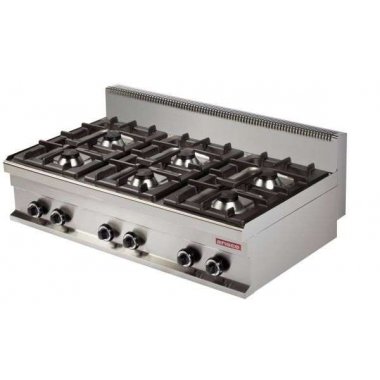 • Fogón con termopar de gran poder calorífico de 6 kW. Parrilla de acero de gran dureza y totalmente desmontable para su limpieza.