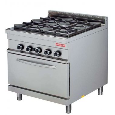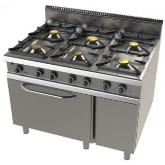 Características Técnicas • Estructura construida en acero inoxidable. • Plano de trabajo, paneles laterales, paneles de mandos, chimeneas y puerta de horno en acero inoxidable AISI-304 • Bandejas recogegrasas en acero inoxidable. • Quemadores alta potencia de doble corona en latón, totalmente equipados con termopar de seguridad. • Parrillas robustas de hierro fundido que permiten acomodar...