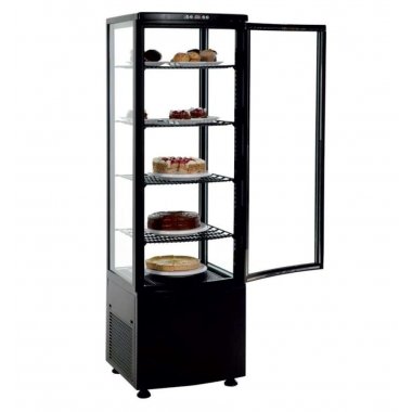 Características Técnicas • Armario frigorífico expositor vertical de 4 caras de cristal. • Diseño limpio y sencillo que hace que los productos se puedan ver desde cualquier ángulo, generando más venta por impulso. • El chasis y los marcos de la nevera está fabricados en ABS y PVC. • Puerta pivotante frontal de cristal. • Estantes de acero plastificados y ajustables en altura. • Iluminación luz...