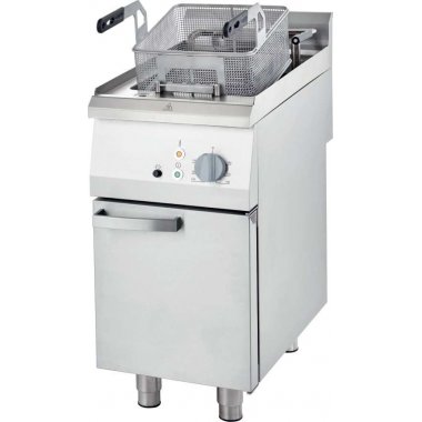 Características Técnicas • Eléctrica trifásico 380V. • Estructura y carrocería en acero inoxidable. • Controlado por termostato de trabajo y de seguridad. • Equipada con una cesta por cuba. • Grifo de vaciado de la cuba. Datos Técnicos • Capacidad: 8 litros • Tensión: 400 V • Potencia: 7,5 kW • Dimensiones Cesto: 190x280x100 (AxFxH) mm • Dimensiones: 400x600x265 (AxFxH) mm