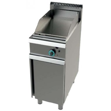 • Placa de cocción en acero pulido de 16mm y peto antisalpicaduras de 100 mm. en acero inoxidable.