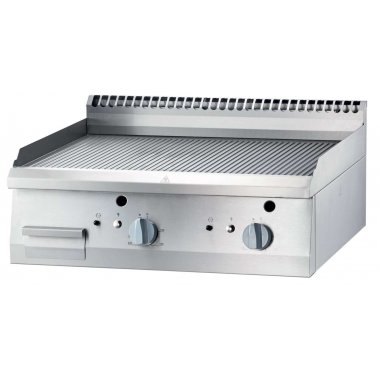 • Placa de cocción en acero pulido de 16mm y peto antisalpicaduras de 100 mm. en acero inoxidable.