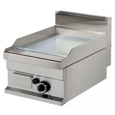 Características Técnicas • Estructura y carrocería en acero inoxidable. • Paneles laterales, paneles de mandos y chimeneas en acero inoxidable. • Placa en acero de 16 mm. con baño de cromo duro con peto antisalpicaduras de 100 mm. en acero inoxidable. • Quemador tubular para una distribución uniforme del calor, con válvula de seguridad y termopar. Sin válvula electrostática. • Encendido por...