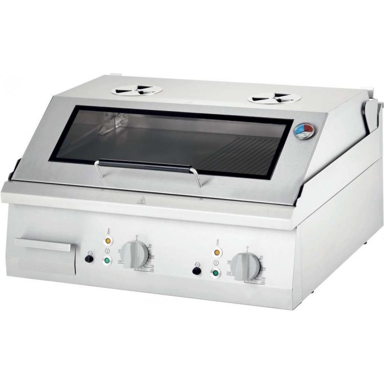 • Tapa de acero inoxidable de serie que permite reducir el consumo de energía hasta en un 30% y mejora el efecto culinario de los productos a la parrilla.