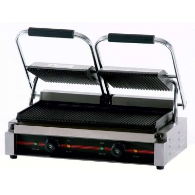 Características Técnicas • El grill eléctrico de contacto ha sido concebido para su uso profesional. Para preparar carne, bocadillos, paninis y verduras. • Acabado de alta gama y por su diseño compacto que permite ubicarlo en cualquier lugar. • Cubierta exterior está hecha de acero inoxidable, por lo que se limpia muy fácilmente. Además, cuenta con dos placas de contacto acanaladas que dan un...