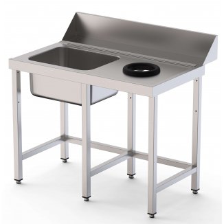 Mesa de prelavado entrada derecha dim.1600x750x850h sin estante con aro desbarazado mm MPSD-160D