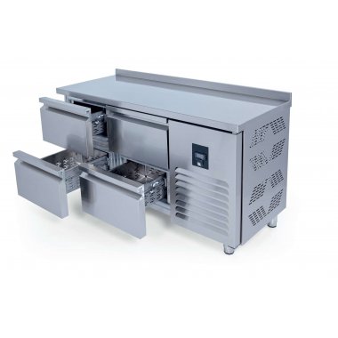 Características Técnicas • Fabricado en Acero inoxidable en interior y exterior del mueble. • Compresor de alta calidad. • Aislamiento de poliuretano inyectado de 40 Kg/m de densidad. • Ángulos redondeados en interior y encimera con peto sanitario de 100 mm. • Evaporador tiro forzado con recubrimiento anticorrosión. • Control electrónico y digital de la temperatura y del descarche. •...