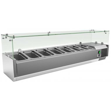 • Vitrinas expositoras refrigeradas para mostrador, válidas para preparación o servicio con mampara de vidrio no cerrada.