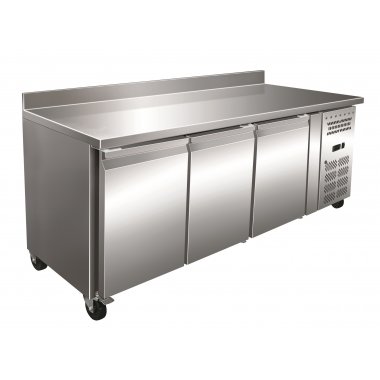 Características Técnicas • Fabricado en Acero inoxidable en interior y exterior del mueble. • Compresores de alta calidad. • Aislamiento de poliuretano inyectado de 40 Kg/m de densidad. • Ángulos redondeados en interior y encimera con peto sanitario de 100 mm. • Evaporador tiro forzado con recubrimiento anticorrosión. • Control electrónico y digital de la temperatura y del descarche. •...
