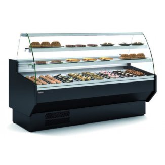 Características Técnicas • Vitrinas de servicio refrigeradas que transmiten una imagen actual y renovada sin perder eficacia en su desempeño. Fabricadas en España. • Diseño elegante, compacto y moderno con 3 posibles decoraciones frontales. De serie color negro (RAL9005) y opcional color blanco y rojo. • Consigue una óptima exposición del producto para maximizar sus características y la...