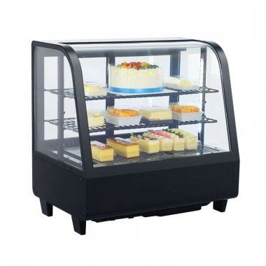 • Vitrina expositora de cuatro caras de cristal con frontal curvado. Ideal para bebidas, postres y lácteos.